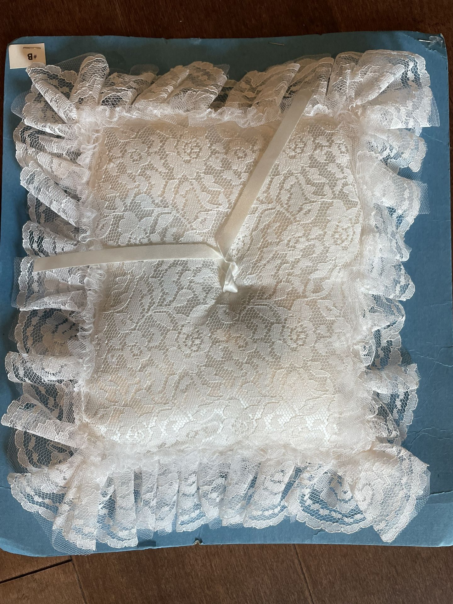 Wedding Ring Pillow for Ring Bearer 7.5” x 6” with 2” lace trim all around Beautiful Condition Circa 1980, very well preserved