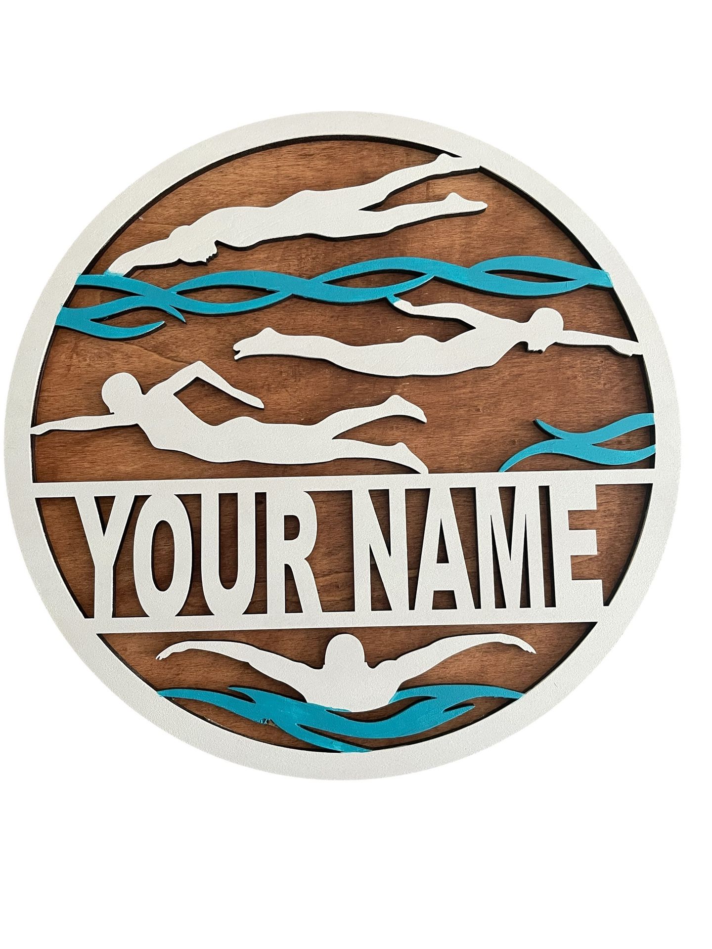 Custom Name swimmer Wood Sign. Made of Wood 1/4 personalized Name 12”