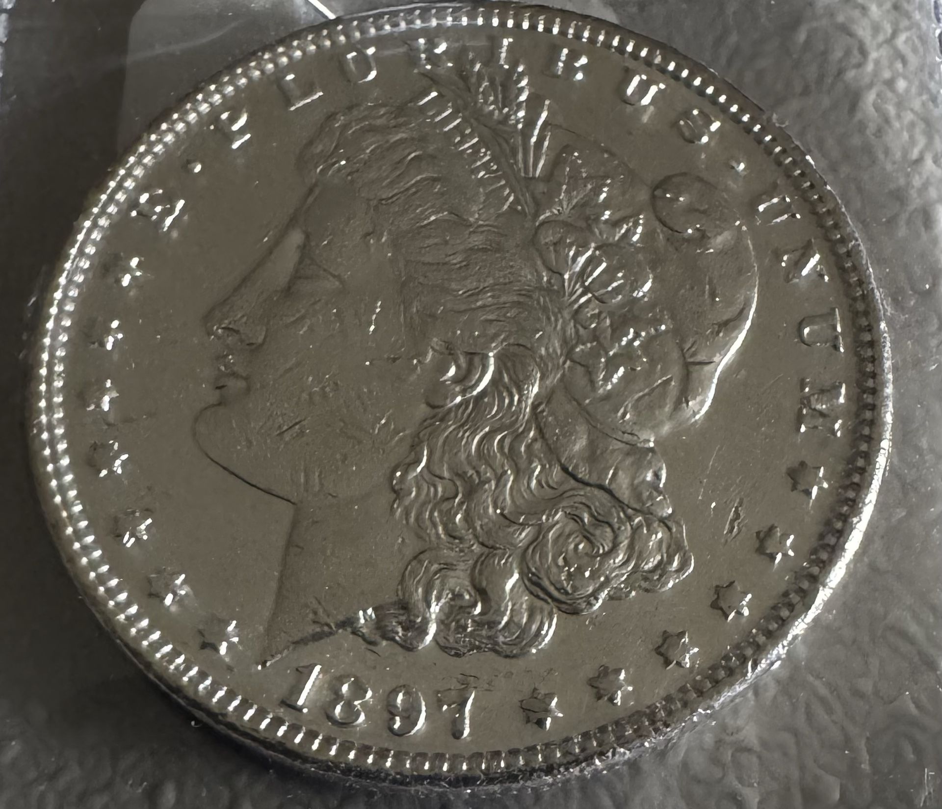 1897 Morgan Silver Dollar coin with O mint mark. 90% silver
