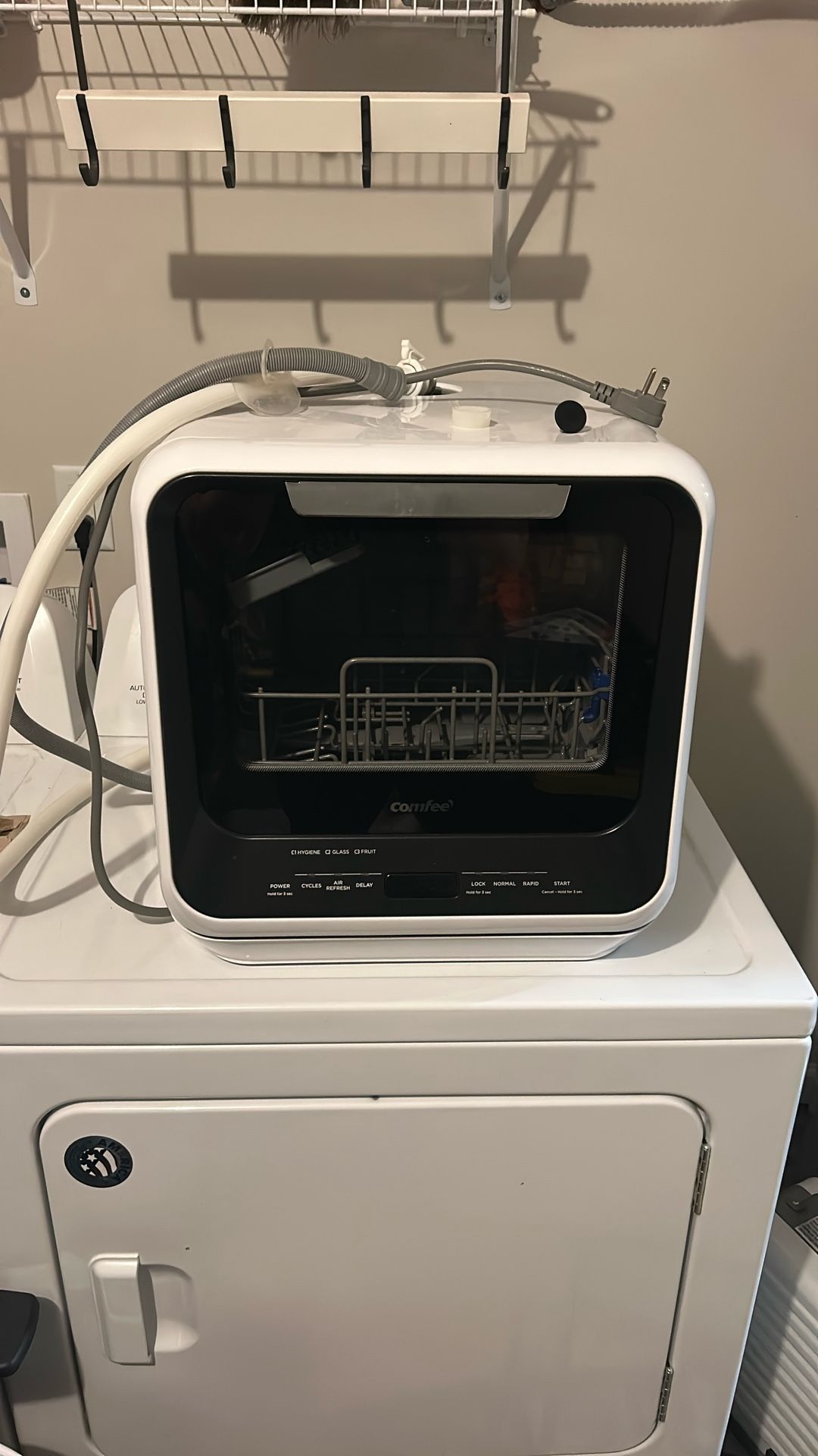 Amazon COMFEE' Portable Mini Dishwasher Countertop with 5L Built-in Water Tank for Apartments& RVs, No Hookup Needed, 6 Programs, 360° Dual Spray, 162℉ High-Temp& Air-Dry Function