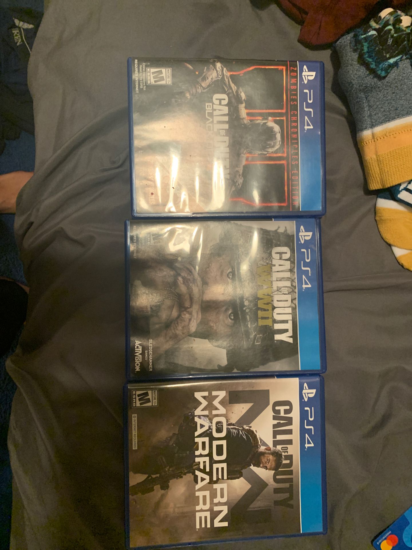 cod modern warfare, cod wwii, & cod black ops 3 all for 70 no lower cant beat that ‼️ $45 for modern warfare $20 for wwii $25 for black ops 3