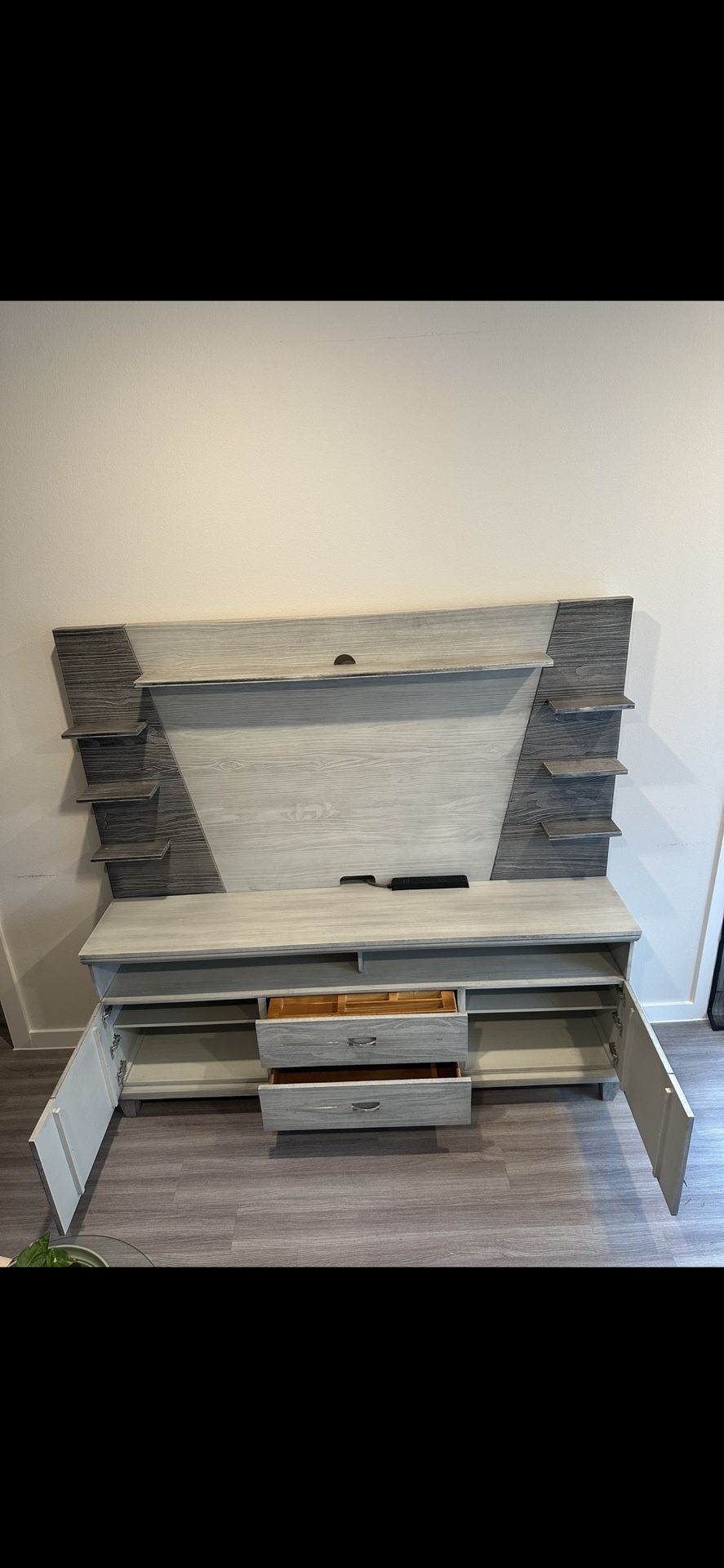 Entertainment stand in excellent condition! Very sturdy and well-built. Purchased from Living Spaces just 2 years ago. Clean, stylish, and ready for a new home. Great for TVs, consoles, and storage.