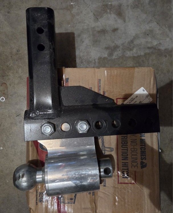 I used the hitch/ball only two times with a lightweight 4000 lb trailer. Excellent condition. The weight distribution system has never been hooked up. I am only selling this because I bought a smaller than anticipated travel trailer and didn't need a WDH. Reciever / shank size: 2.5" Ball size: 2 5/16" Rise/drop: 8" Brackets" 3" 4" 5" 6"