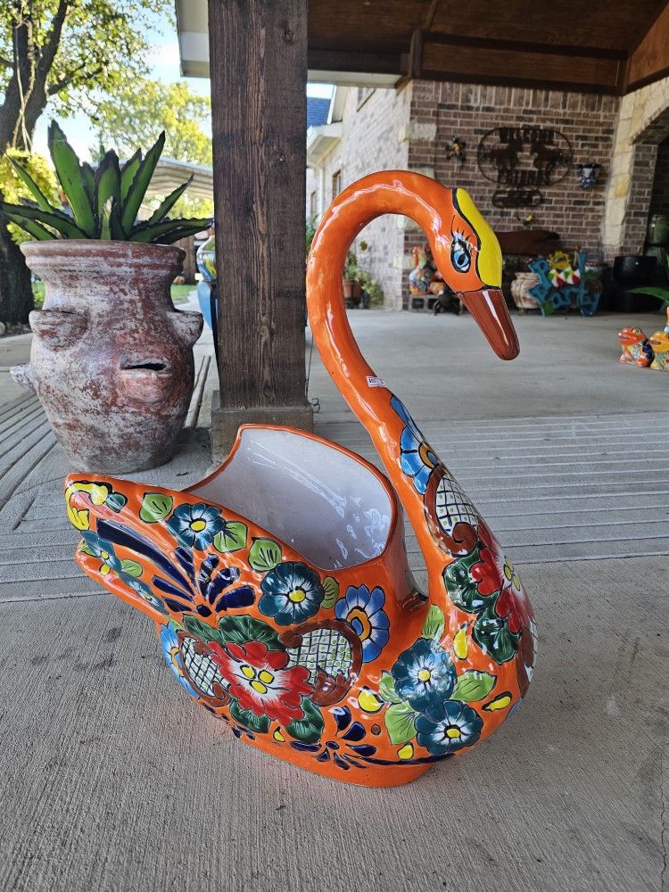 Authentic Talavera Orange Swan Clay Pots, Planters. Plants. Pottery $85 Cada Una