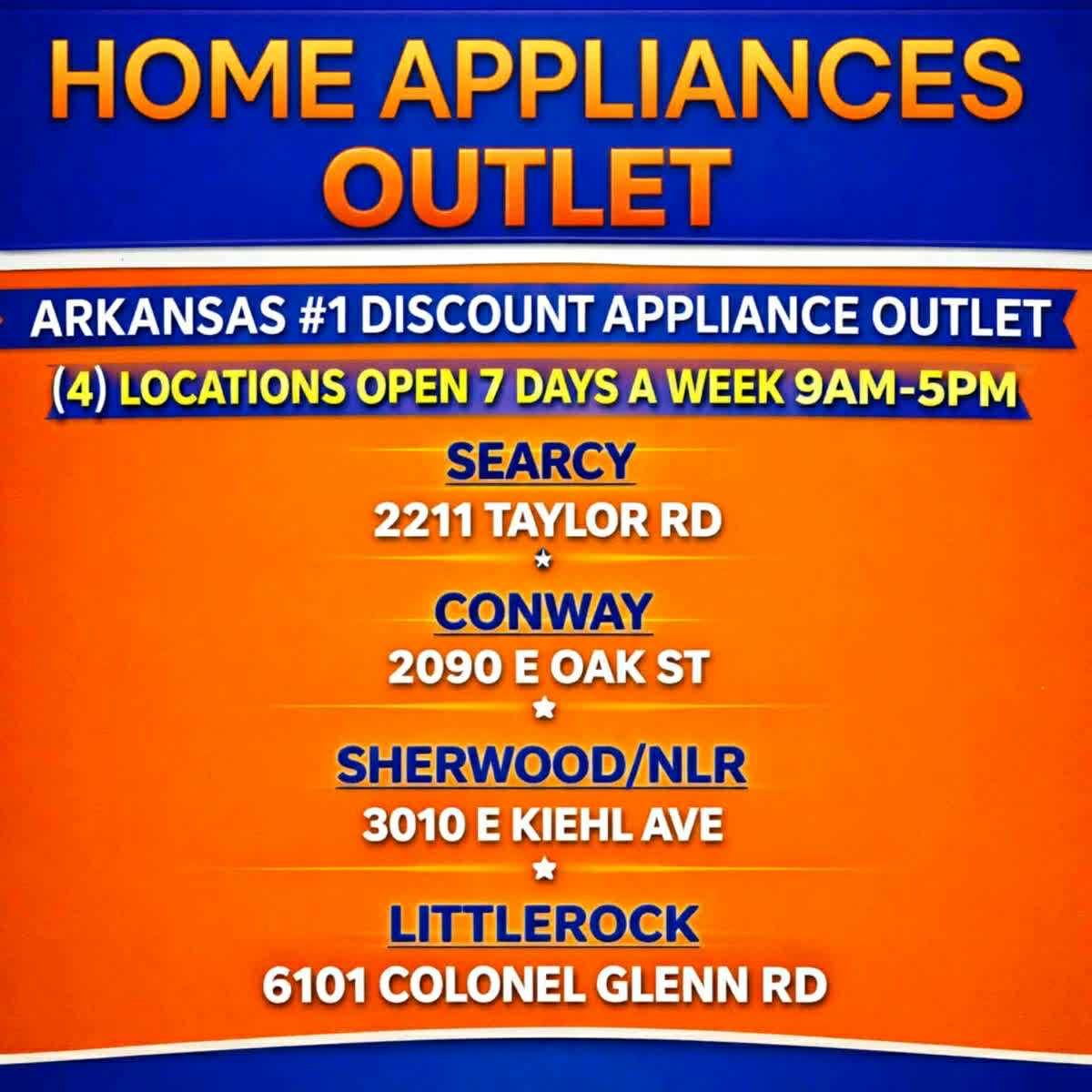 ππ₯ MARCH MADNESS APPLIANCE BLOWOUT! π₯π The brackets arenβt the only thing dropping β OUR PRICES ARE TOO! π₯ Save BIG on: β Refrigerators β Washers & Dryers β Dishwashers β Ranges β Freezers β $0 Down β Take It Home Today π FREE Delivery β»οΈ FREE Removal π° Financing Available π Shop Home Appliances Outlet at: β’ Little Rock β’ Conway β’ Searcy β’ Sherwood / NLR π― Donβt wait until the final buzzer β these deals wonβt last! π© Message us now or stop by today!