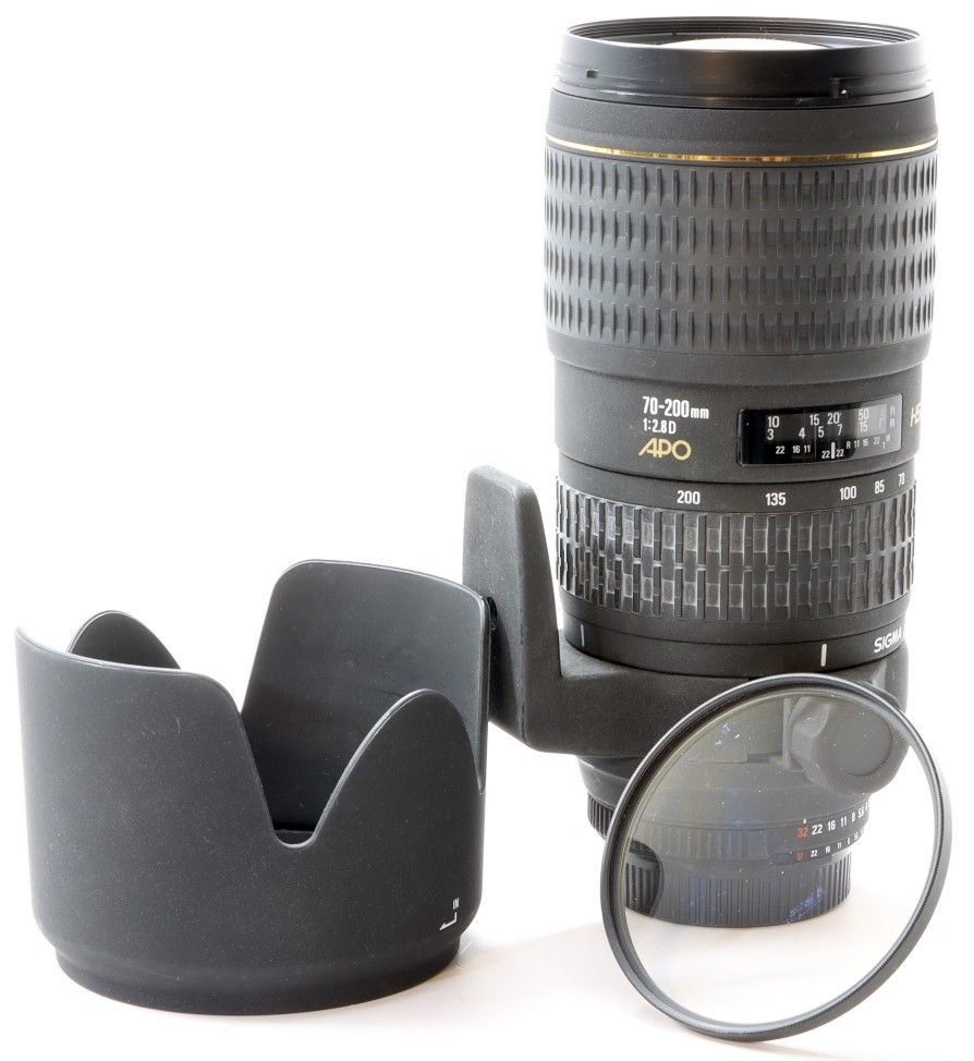 Sigma Zoom Telephoto 70-200mm f/2.8 EX APO IF HSM Autofocus Lens for Nikon AF-D This is a sharp, fast lens. It's strength was the ability to capture low-light scenes. • Front & Rear Caps • Lens Hood • UV Filter always mounted to protect the elements. • Clean glass, no blemishes, scratches, or discoloration on the glass, • Cash meetup in Glendale. • No trades please.