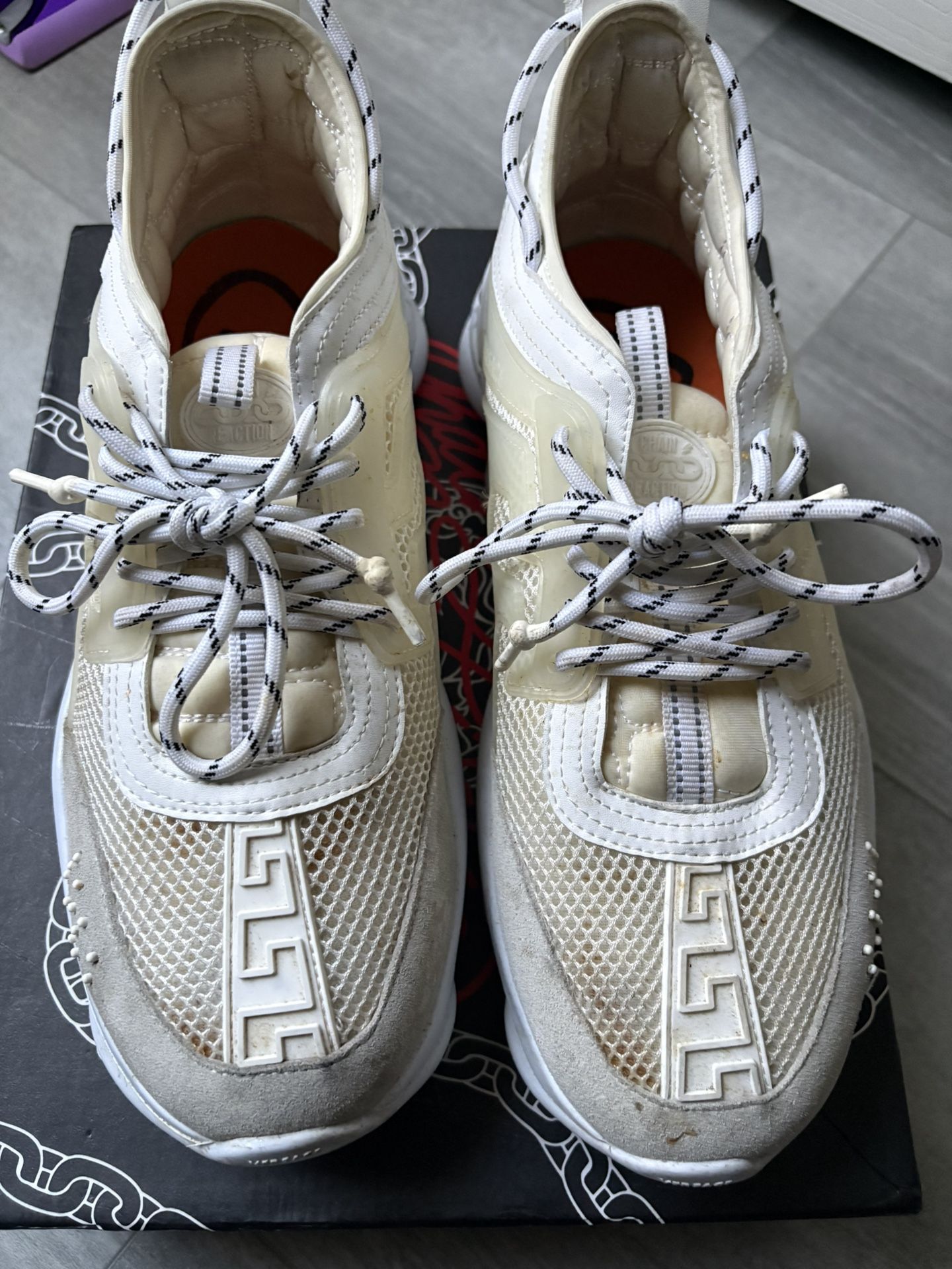 Authentic Versace Chain Reaction sneakers Men’s size 10.5 Used, clean condition Original box included Raleigh pickup Cash only No trades or shipping!