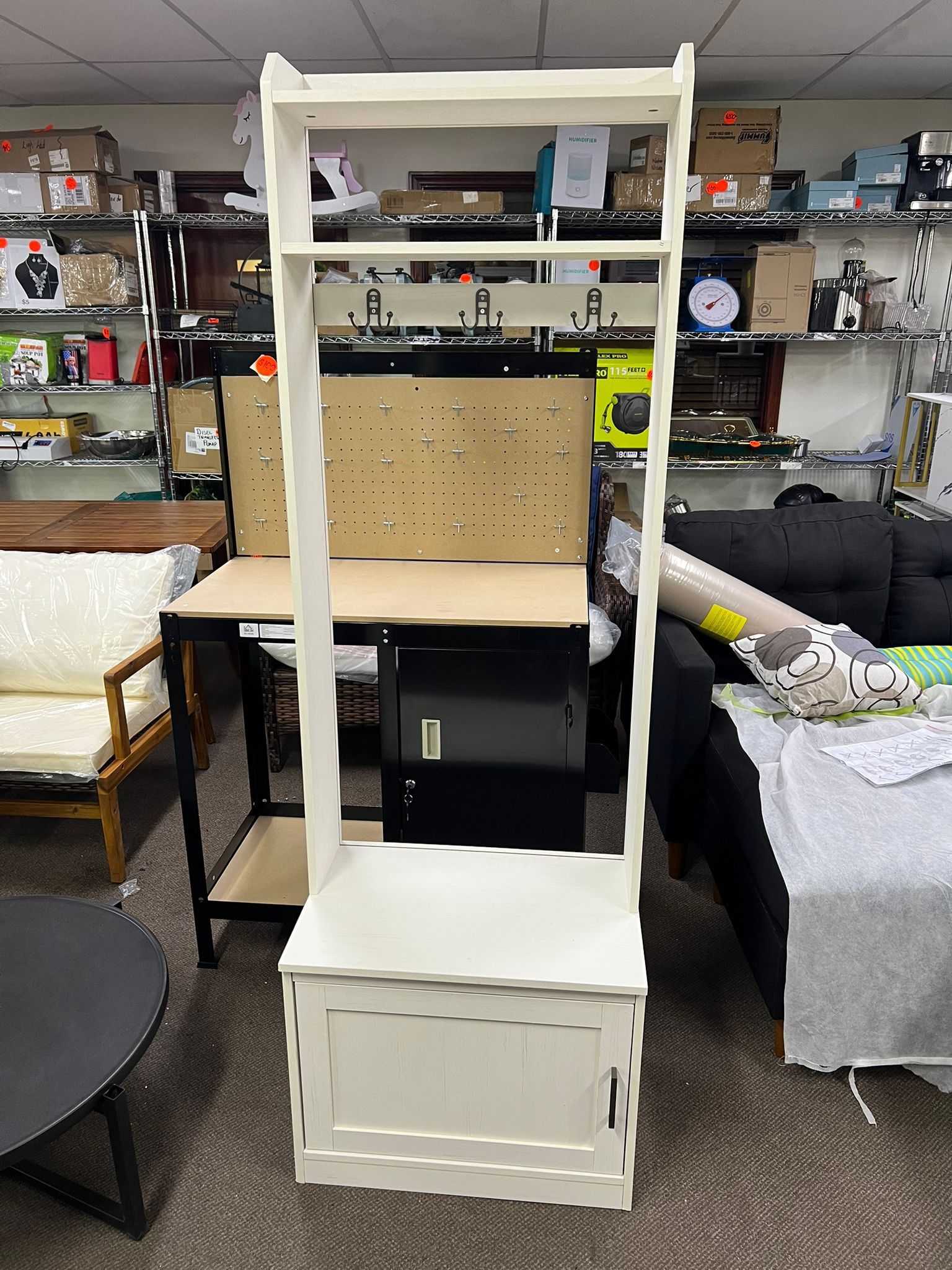 Storage bench w/towel rail+4 hooks, white, 25 1/4x14 5/8x68 1/8 "