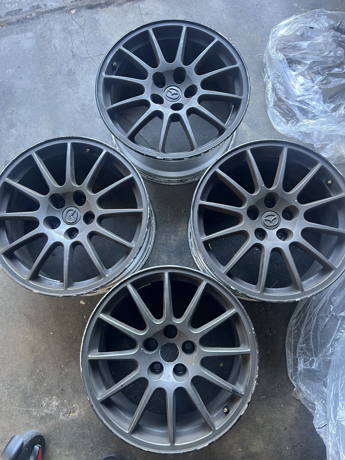 Selling my 4 set of 18x8.5 ENKEI wheels. I don't have the Mitsubishi wheel caps just the Mazda ones which you see in the pics. You can check them on eBay how much the rim goes for used or brand new throw me an offer no low balling please. Ignore: Toyota Honda Acura Mazda Ford Mitsubishi Chevy Rims Wheels Racing