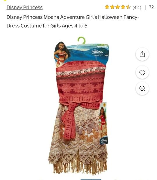 Disney Princess Moana Adventure Girl's Halloween Fancy-Dress Costume for Girls Ages 4 to 6