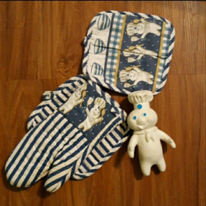 Includes character oven mitt and two pot holders character is vintage 1971