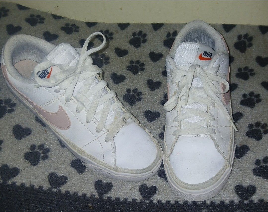 Nike White leather sneakers pink Nike accent. Good condition. Size 8 Copia near Pershing by Austin High School El Paso Texas