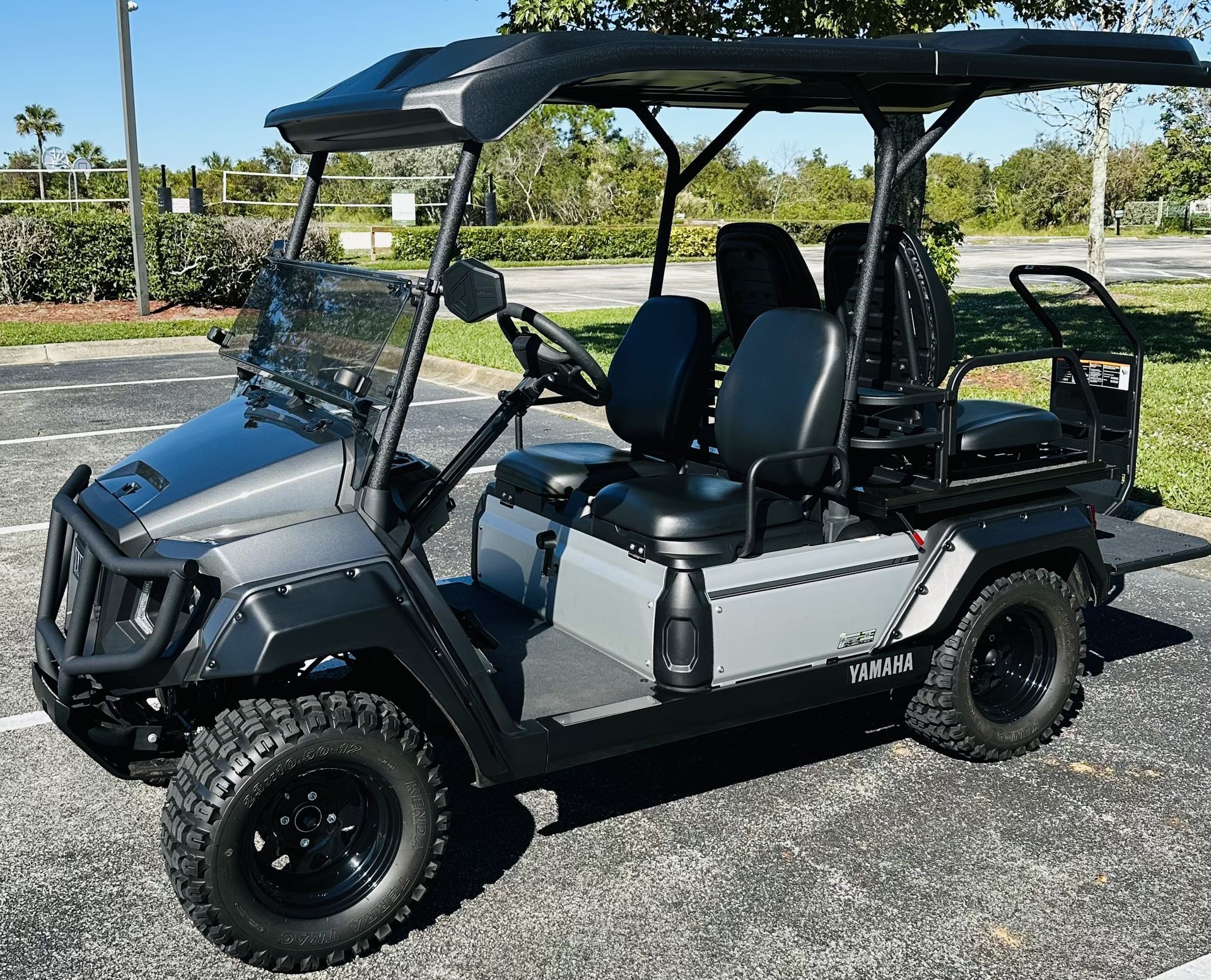Purchased October 2023 from Golf Carts Unlimited, used extensively on road, can be registered as a low speed vehicle for road use. Full DOT lighting, only 85 hr (increasing), under Yamaha factory warranty, well maintained and clean. More capabilities / utility than a “regular” golf cart, 5 gal fuel tank, 50 mi/gal, ride all day without having to worry about getting stranded with a dead battery. No low offers considered, serious offers only