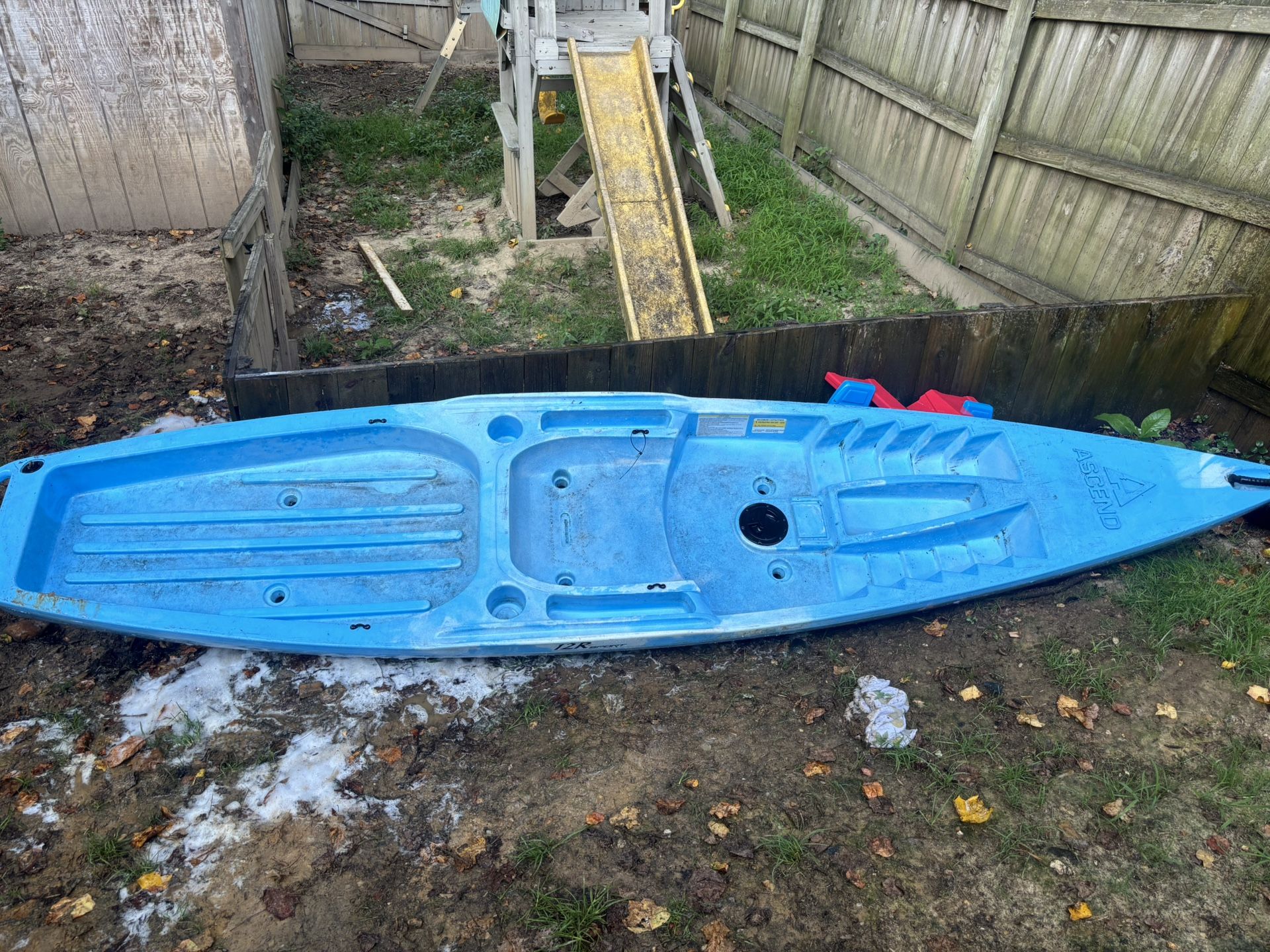 Ascend 12r sport it’s a 12 footer has paddle do not have the seat always used without when I bought it. It did not come with it. You can get it online for 20 bucks asking 200. Has a few scratches still very useable I have not used much just have no need for it.