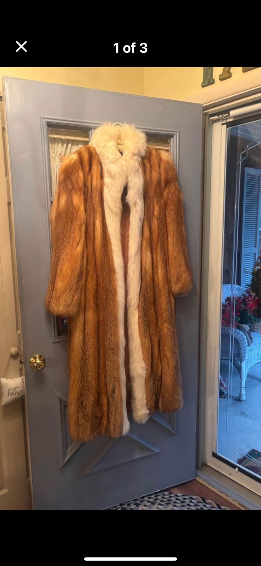 Full length red fox coat 50 inches long size 12 velvet line pockets satin lining original price was $5000