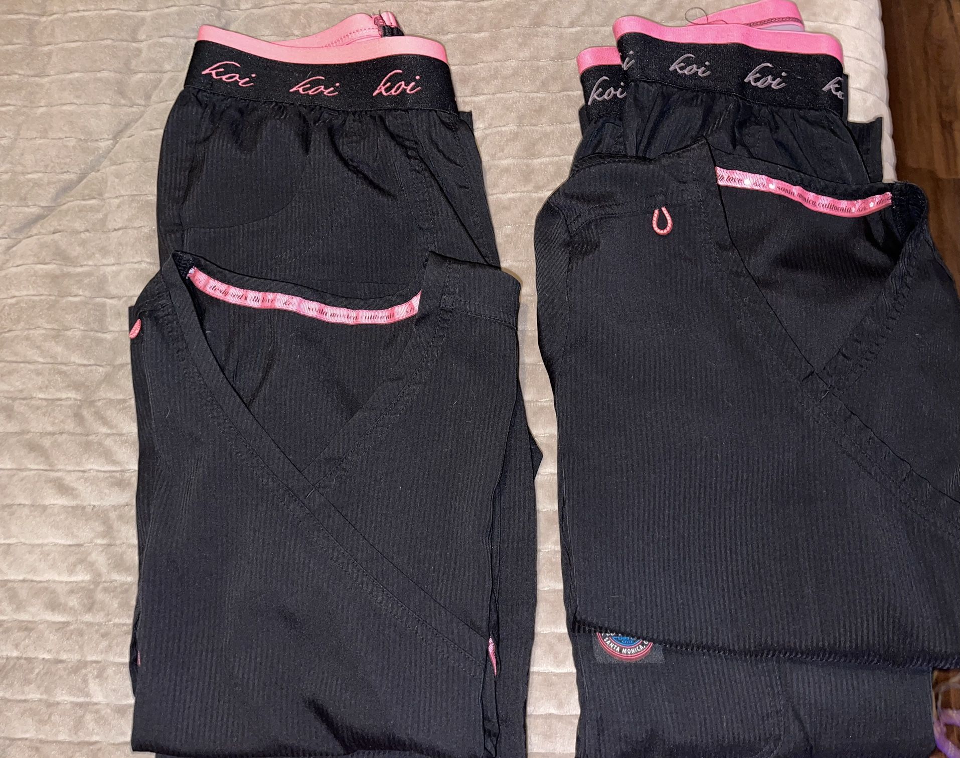 2 koi scrub sets , sold separately or by piece Tops are Xs 1 bottom is XXS petite 1 bottom Xs petite $25 each piece