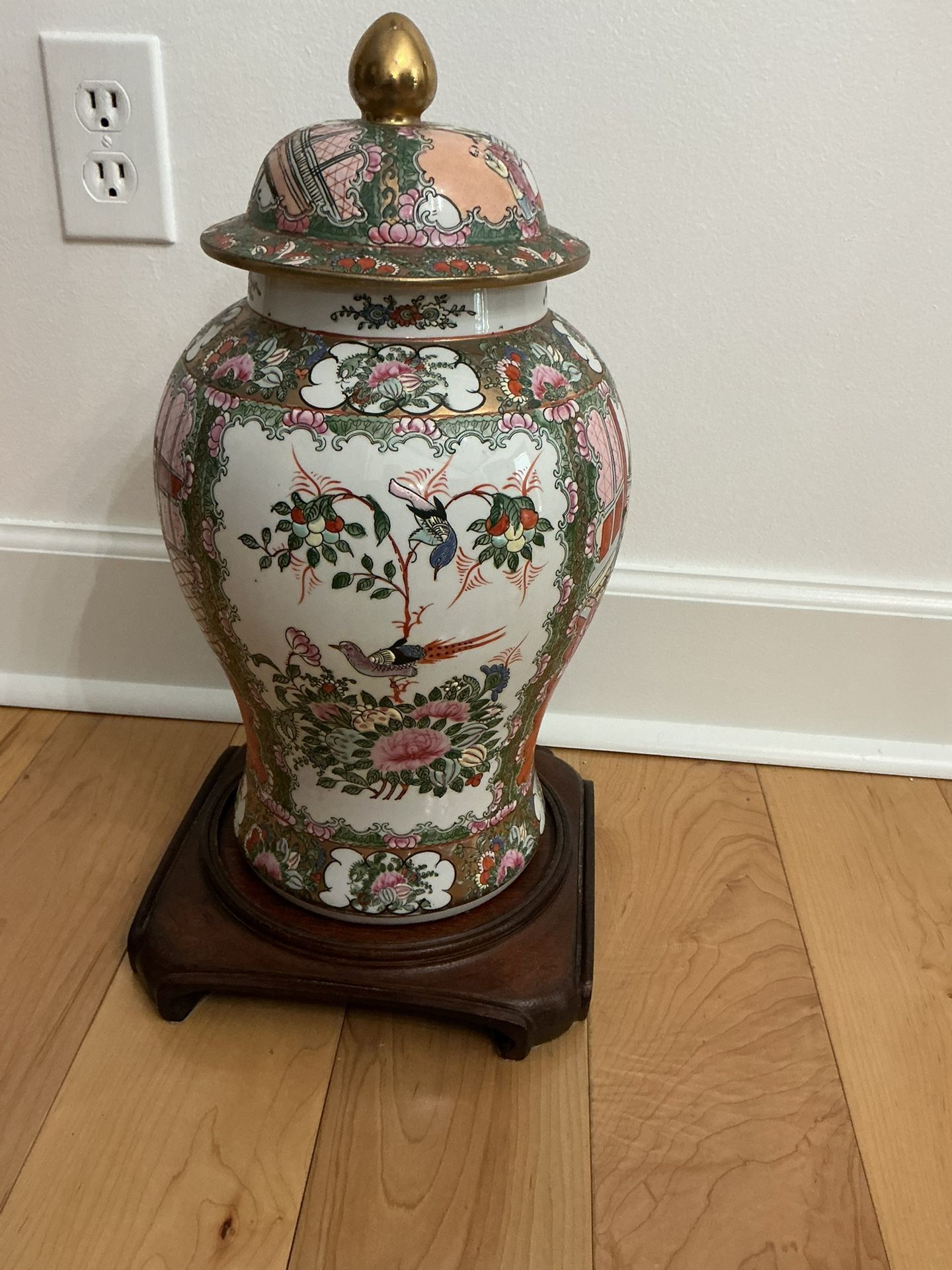 Oriental Vase with Cover and Stand, 17” high, For $450.00. Pick up at house.