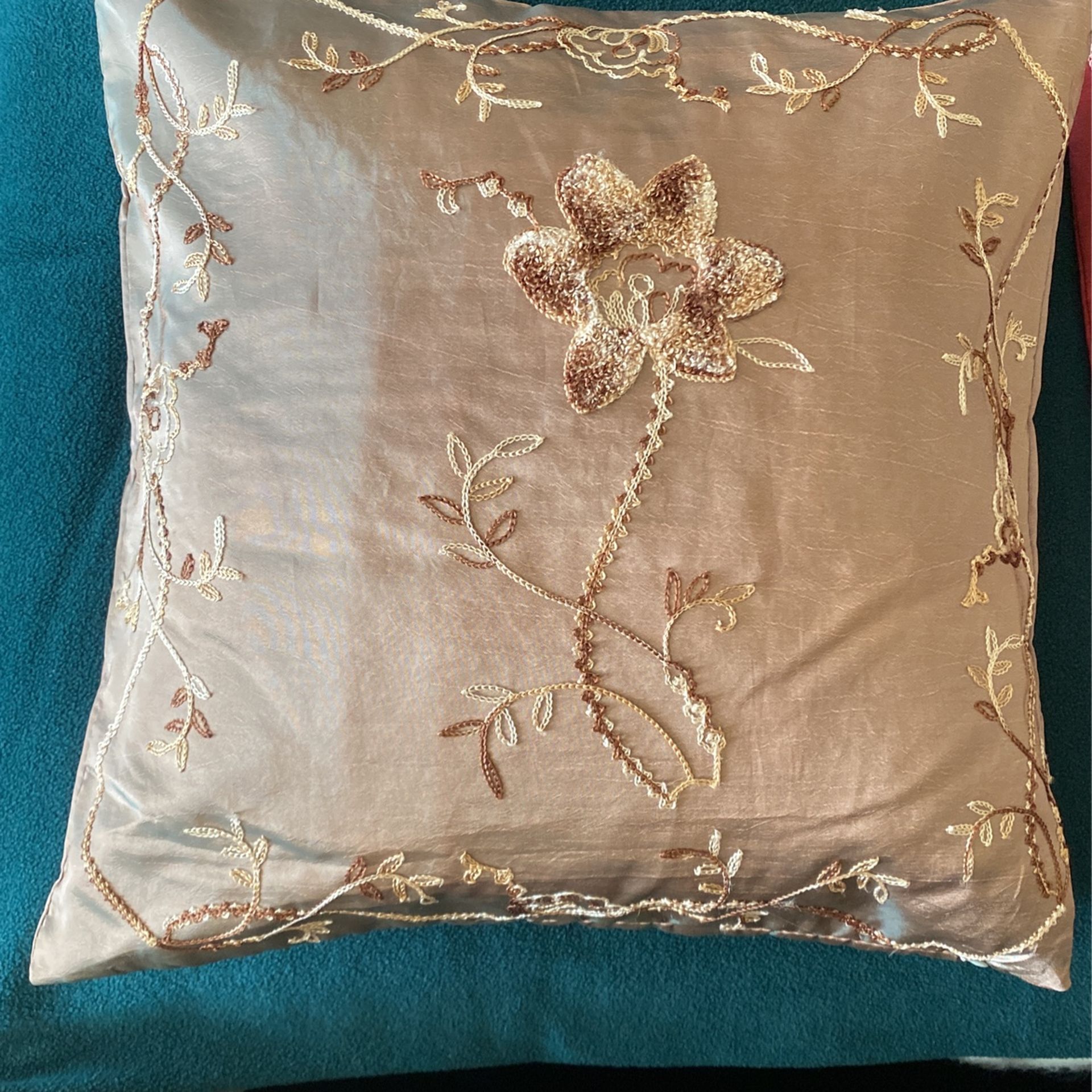 3 sets, 2 of each color $10 per pair. Very nice embroidered cushion cases/covers. 16x16, 17x17, 14x14 inches respectively