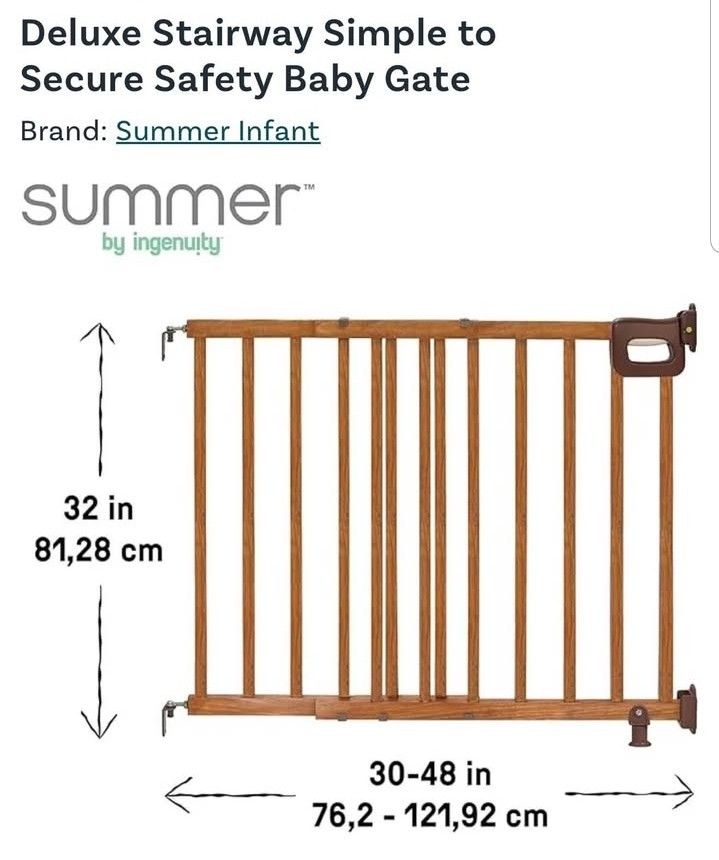 Deluxe Stairway Simple to Secure Safety Gate, Fits openings ranging from 30 to 48 inches wide, Black color Requires drill into the wall Sold as is. Buyers are welcome to inspect before purchase.