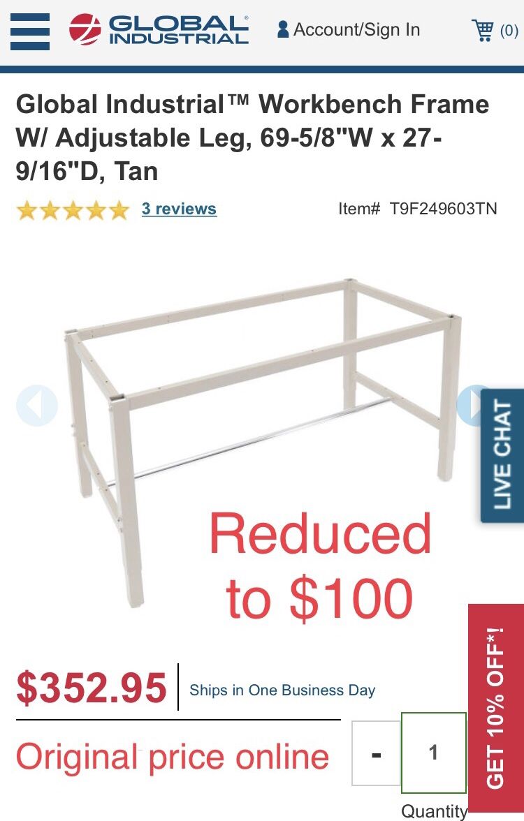 Free assembly and delivery. See attached photo description. Heavy duty steel workbench frame from Global Industrial. Length is 72 inches long. Original price from Global Industrial currently listed as $352.95 get it here for only $100.
