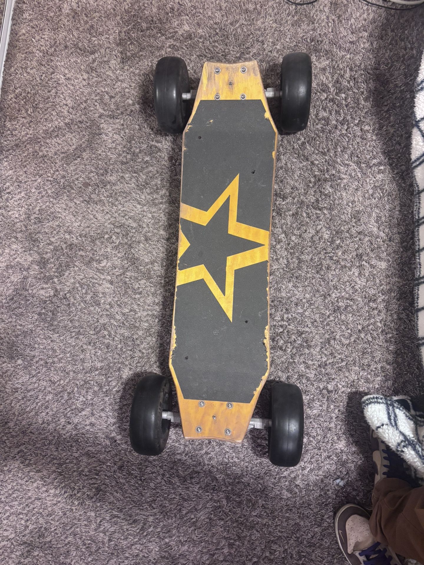Off-road style skateboard/longboard inflatable wheels. Used to go down mountains or grassy Hills.