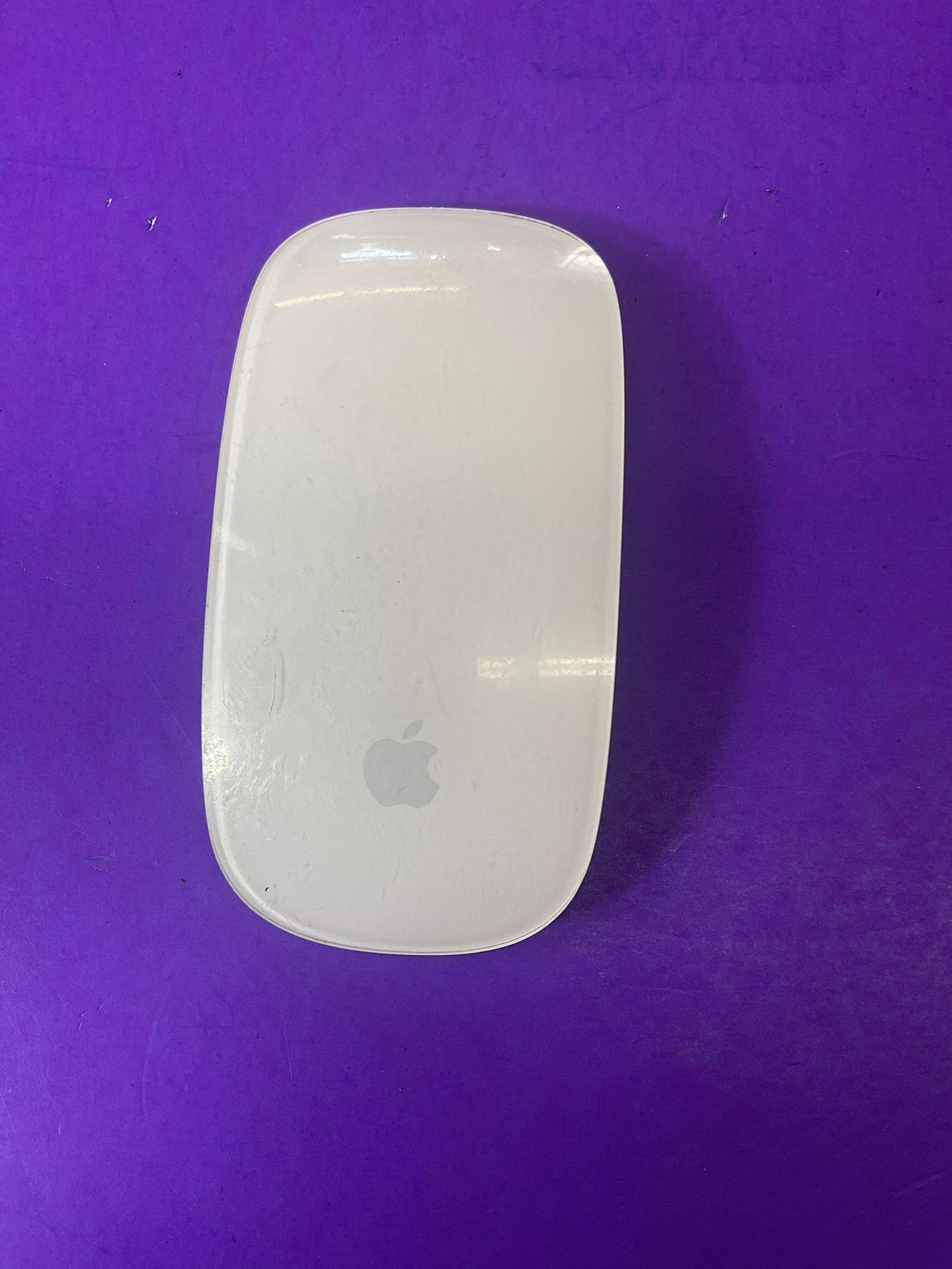 • Brand: Apple • Product: Magic Mouse (Gen 1) • Connection Type: Bluetooth Wireless • Power Source: Requires 2 AA batteries (battery compartment on bottom) • Color: White top with silver aluminum base