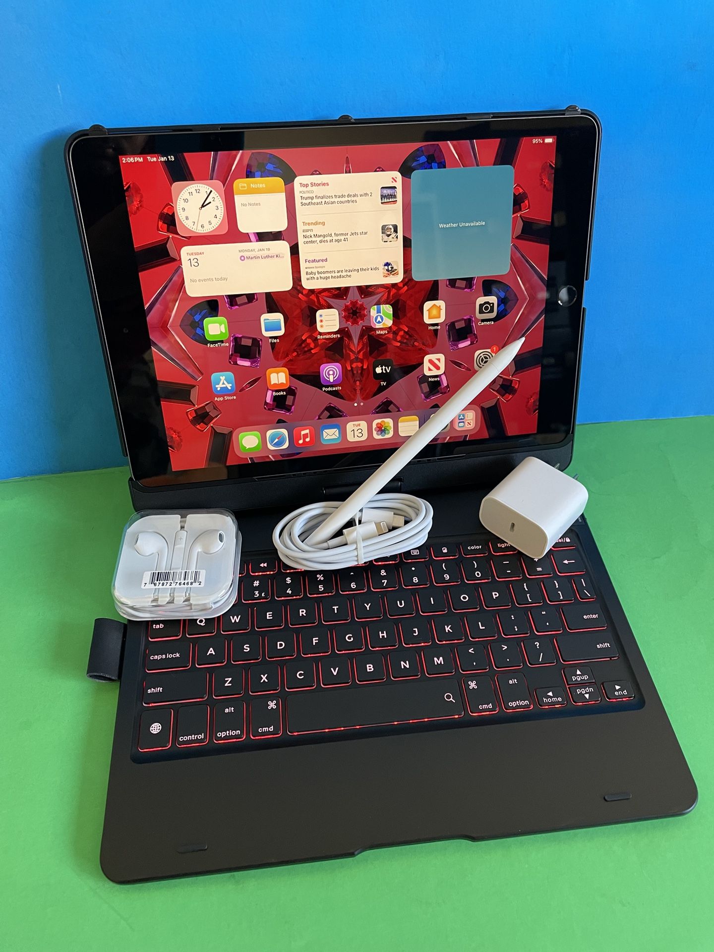 Apple IPad 9th generation (2021 Model) Excellent condition No any kind of lock No Icloud/password all clean Factory reset Ready for new user 10.2” Retina Display 64GB Memory Touch ID / Fingerprint 2 HD cameras front & Back Siri, Facetime, GPS, calendar, app store, etc. pre installed. Long Battery life Lightening cable port ( iOS 18 updated) Youtube, Netflix , prime video, Hulu, HBO, pub G all supported *Apple pencil & keyboard supported (not included) Good for gifts (birthday/christmas) school work, business work, home work, entertainment etc. Comes with New Fast Charging cable(2M / 6ft) New Fast Charging adapter 20w New headphone New stylus pen (works like Apple) New Hard Bluetooth keyboard case with 360 rotating & multi -color light feature) $249 firm firm (256gb $349) No trade (pick up only) Serious buyer with immediate pick up only No holding first come first serve Low ballers will be ignored Pick up El Monte This is WiFi only model. (Cellular model $299) Buy with confidence “Highest 5 star ⭐️ “ rated seller Apple IPad 9th Generation (10.2” Retina /Touch ID /IOS 18/ 2021 Model) 64GB with Pen, Keyboard & Accessories