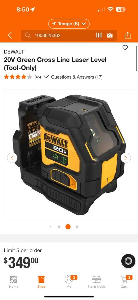 DEWALT 20V Green Cross Line Laser Level (Tool-Only) 199 price firm