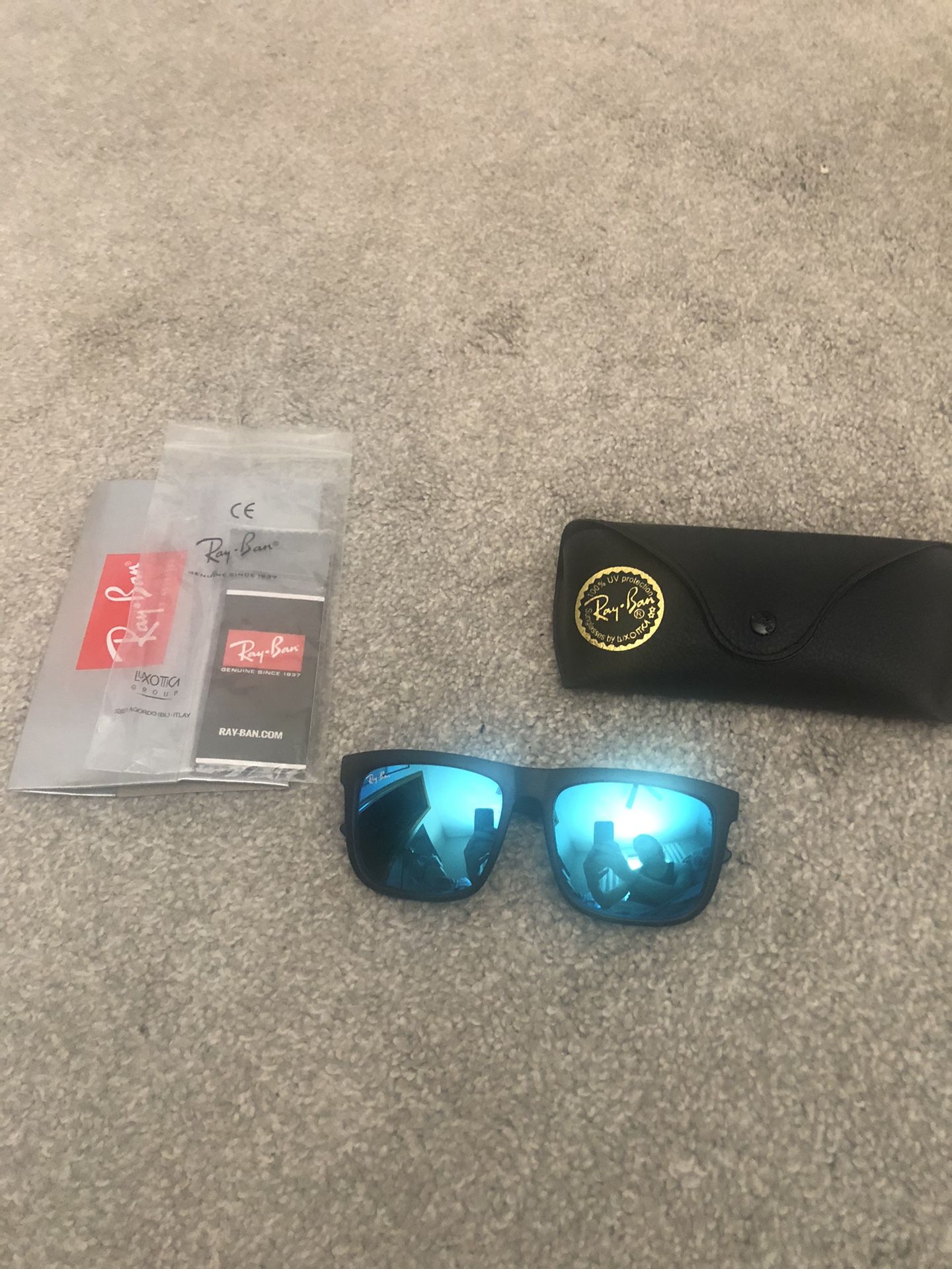 Ray-Ban Unisex Sunglasses Brand New & Never Worn Blue Lenses & Black Frames Original Storage Case & Cleaning Cloth Included