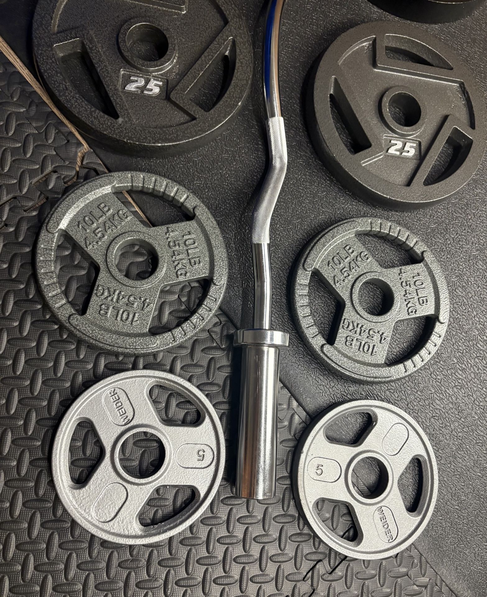 NEW Olympic Equipment Curl Bar of 20# with Cooper Bearings and Plates 2X35s, 2X25s, 2X10s and 2X5s pounds. Brute 170#