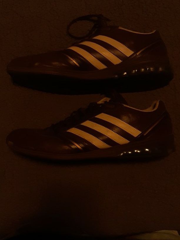 Brown sneakers. US size 10.5 mens. Good looking shoes with lots of life left.
