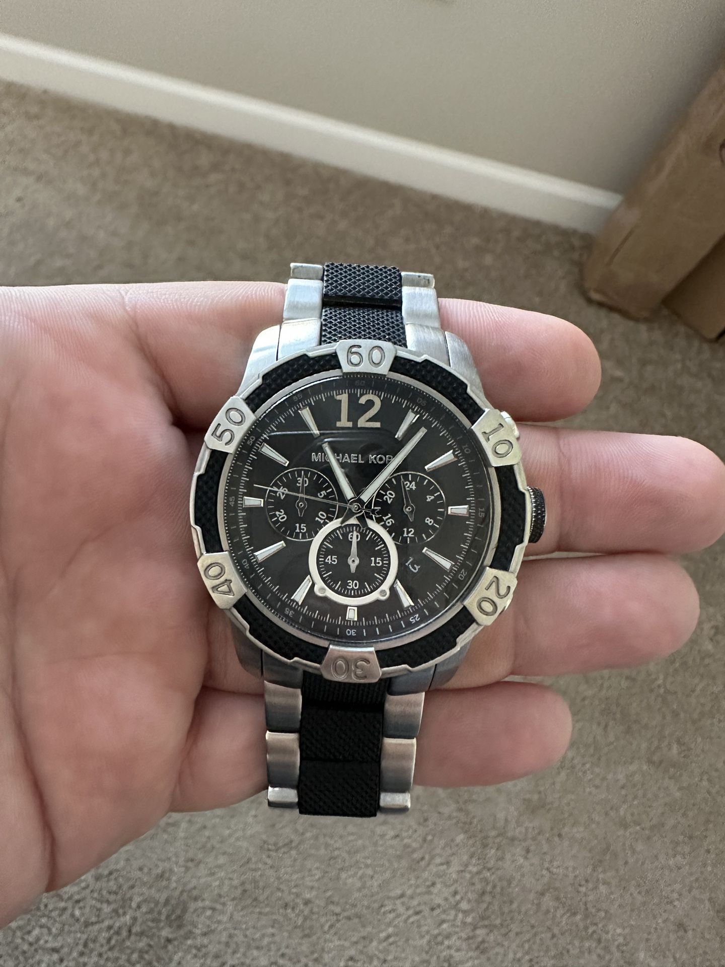 Men’s Michael Kors watch in amazing shape. Gently used. 9/10 condition. Just needs a new battery which is only couple dollars.