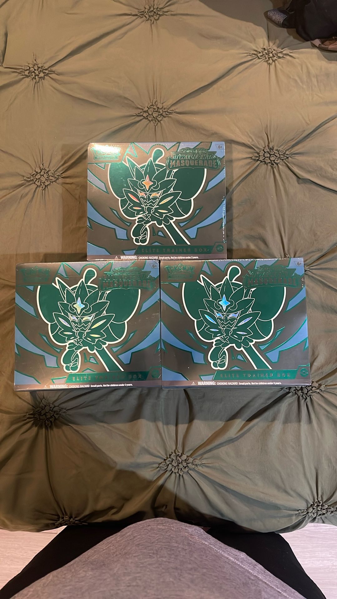 I have 3 twilight masquerade ETB Pokemon cards for sale. $80 each or all 3 for $225. I Accept Cash/Cash app/Zelle