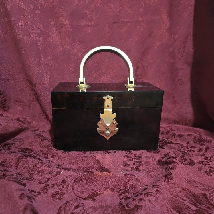 Vtg Faux Tortoise Shell Purse Handbag