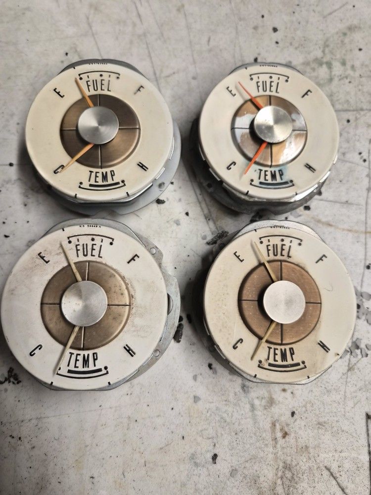 $60 Each or all (4) for $200 Cash Only All Untested / Unknown Condition 1960 Ford Thunderbird Fuel / Temperature Gauges 1959 Tbird 1958 Hotrod Custom Truck Car Part Parts