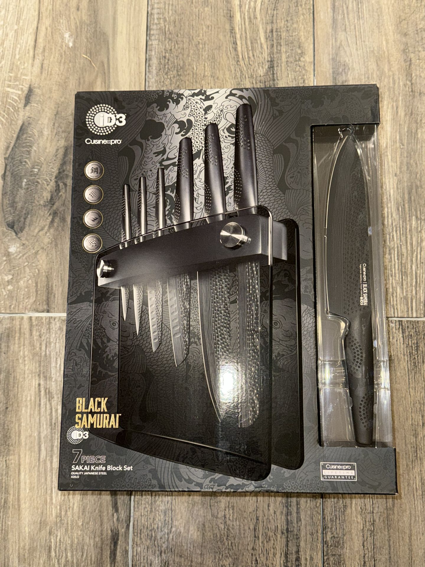 $250 (73% off of retail price $900) Stanhope, NJ Cross posted Additional Matching Knives: iD3® BLACK SAMURAI® Cleaver 6.5”, Quality Japanese Steel, retail $170 (50% off) = $85 iD3® BLACK SAMURAI® SAKAI Steak Knives, Quality Japanese Steel, 4 piece retail $160 (45% off) = $88 If you like culinary items from any of the following brands: J.A. Henkel, Zwilling Twin Signature, Wusthof, Paudin, Shun, Takashi, Misen, and Hedley & Bennett. You should take a look at these sets from Cuisine Pro. Strong reviews on several websites and they display beautifully just as well as the other brands listed above, but at a fraction of what the others cost. FEATURES * The Cuisine::pro® iD3® Black Samurai™ Sakai Knife Block 7 Piece contains 1 x 20cm/8" Chefs Knife, 1 x 20cm/8" Bread Knife, 1 x 15cm/6" Santoku Knife, 1 x 11cm/4" Utility Knife, 1 x 12.5cm/5" Santoku Knife, 1 x 9cm/3.5" Paring Knife. Housed in a stylish knife block to showcase your blades. * Cuisine::pro® iD3® Black Samurai™ knives are razor-thin and light weight making for an extremely fast, agile chopping and slicing experience. They are perfect for precision cuts and mincing. Every curve and line has been designed for precise performance without bruising or tearing delicate foods. * Inspired by the traditional Japanese master craftsman and Samurai sword makers, Cuisine::pro® iD3® Black Samurai™ knife blades are made from premium Japanese Steel that has been mined in the same Japanese region of Chou-Ki Chiba since the middle of last century. * Backed by the Cuisine::pro® Lifetime Guarantee. DESCRIPTION: Representing the very best in craftsmanship and technology, the iD3® Black Samurai™ Sakai Knife Block 7 Piece by Cuisine::pro® is an essential for your kitchen! The Black Samurai™ knives feature a unique matte black ceramic coating that is designed to be stain resistant, immune to acidic foods and provides an antibacterial layer to the blades. Each blade is crafted from premium Japanese steel that has been tapered at an acute angle to create an ultra-sharp cutting edge. These world class knives have been expertly crafted with an innovative asymmetrical handle design with iD3® Microdot Technology that assists in providing maximum grip, keeping hands safely away from the blade. These knives are razor-thin and light weight making for an extremely fast and agile chopping and slicing experience, perfect for precision cuts and mincing. Every curve and line have been designed for precise performance without bruising or tearing delicate foods. This comprehensive set includes a bread knife, chefs knife, two santoku knives, a utility knife and a paring knife housed in a sleek and sophisticated knife block thats guaranteed to look beautiful on any kitchen counter. Introduce professional quality and sophistication to your culinary collection with the Cuisine::pro® iD3® Black Samurai™ Sakai Knife Block 7 Piece! The Cuisine::pro® iD3® razor-thin, light weight knives, make for an extremely fast, agile chopping and slicing experience. They are perfect for precision cuts and mincing. Every curve and line has been designed for precise performance without bruising or tearing delicate foods. Inspired by high performance knives used by Japanese chefs, our exclusive Cuisine::pro® iD3® collection represents the very best in cutlery craftsmanship and technology.