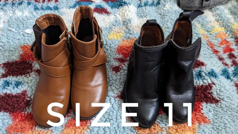 All shoes are in good condition. the pink vans are more used then the rest though. Boots - $10 each Vans - $10 each Sketchers - $10 each Adidas - $15