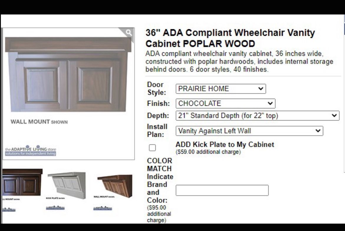 36" ADA Compliant Wheelchair Vanity Cabinet POPLAR WOOD 21” depth