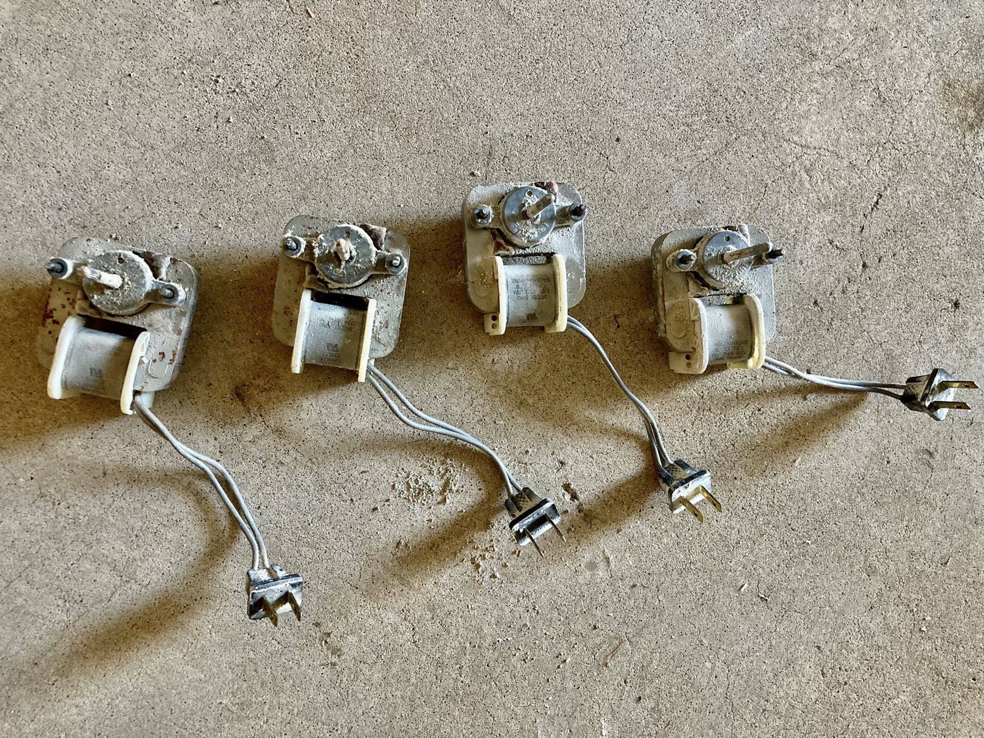 FREE! Four exhaust fan motors. 15 yrs old. All still work. Just replaced with new ones. Great for a motorized project!