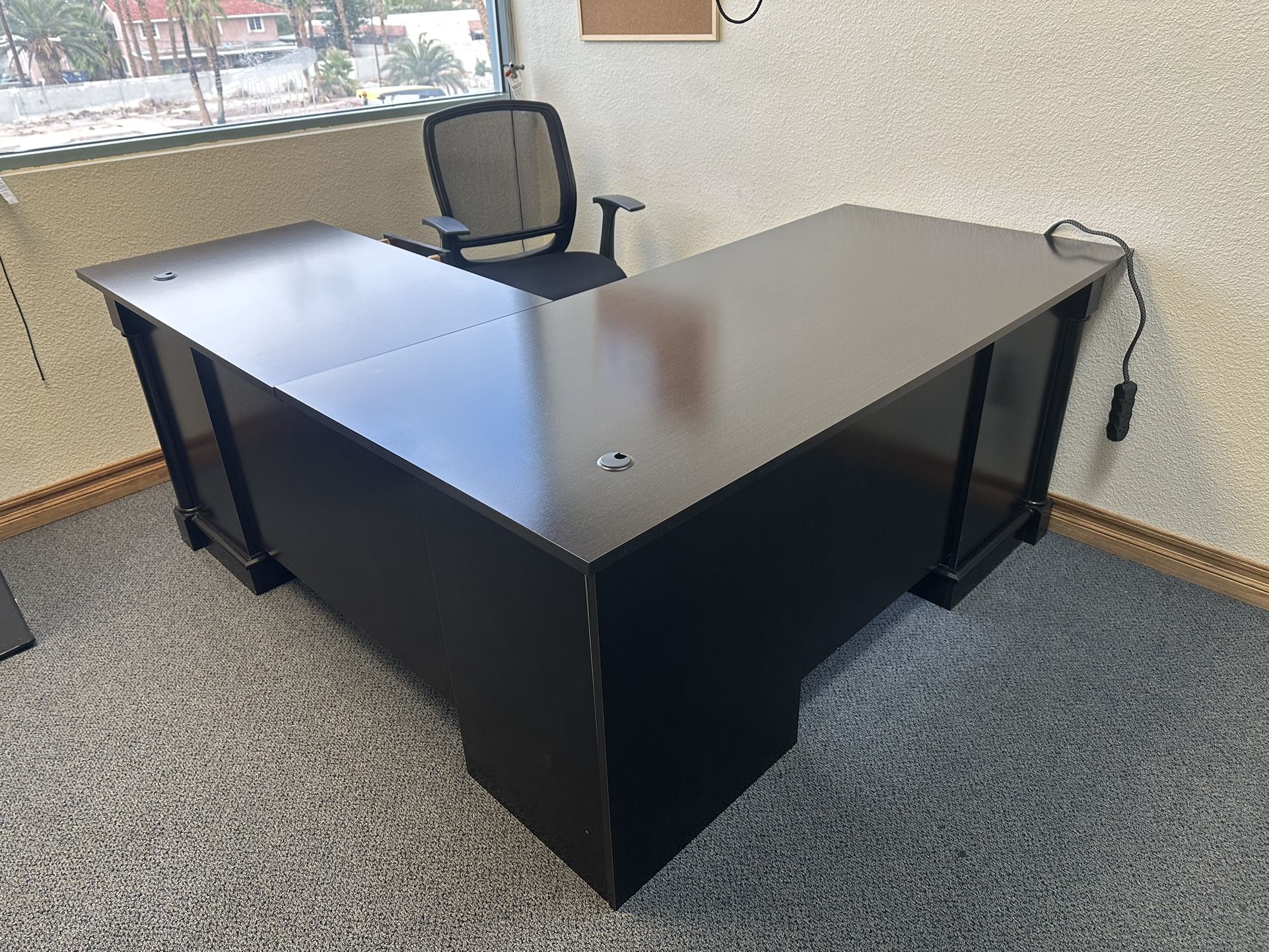 Beautiful like brand new. It’s impossible to not feel like the boss behind this desk. Locking drawers keyboard draw it has it all.