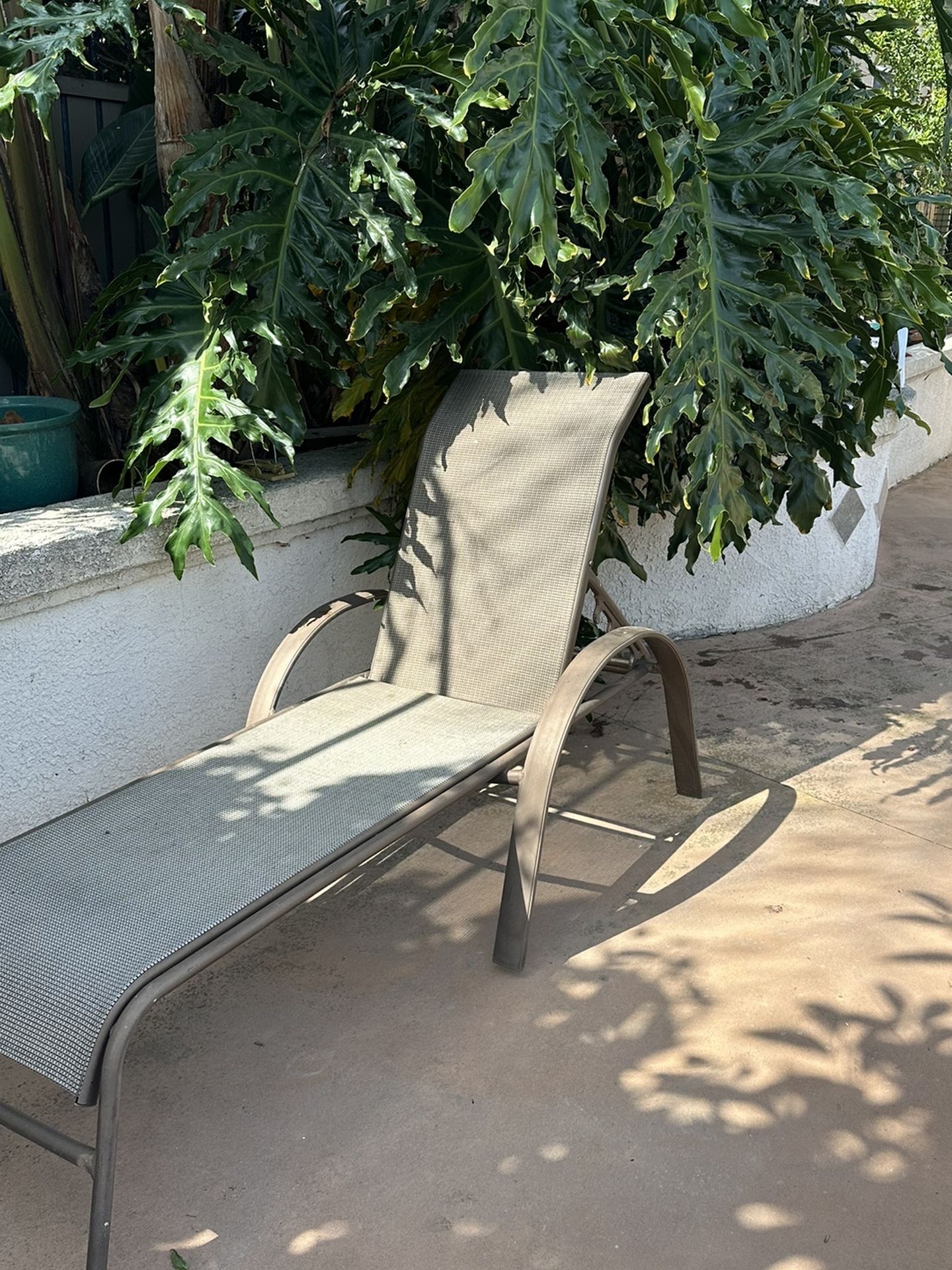 Patio lounge chair with adjustable back rest ideal for poolside lounger . Khaki color.