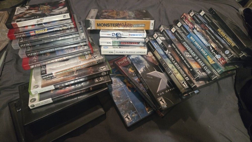 PC Monster madness $3 game/case PS2 SOCOM 3 US Navy Seals $5 loose Fishermans bass Club $5 game/case 007 Everything or Nothing $5 game/case Tony Hawks Pro Skater 4 $5 CIB Soldier of Fortune: Gold Edition $8 CIB Jak 2 [greatest hits] $8 CIB Hot shots golf fore $9 CIB Xmen the game $9 disc/cover Final fantasy xii $10 CIB Crash the wrath of cortex $11 game/case Burnout Revenge 🔥SOLD🔥 X-men legends 2 $18 game/case PS3 Uncharted 2 $3 Loose Nba 2k11 $4 Loose Bioshock Infinite $4 Loose Assassin's creed botherhood $4 CIB Uncharted 3 $5 CIB Uncharted $6 CIB Call of Duty Advance Warfare $7 CIB Assassin's creed 3 $7 CIB Tomb raider $7 CIB Street fighter IV $7 CIB Bioshock 2 $7 CIB Batman Arkham Origins $7 Loose Batman Arkham City $8 CIB Batman Arkham knight [greatest hits] $9 CIB Lego Batman 2 [greatest hits] $10 CIB Last of Us $13 CIB Resident Evil Revelations 🔥SOLD🔥 Resident Evil Revelations 2 🔥SOLD🔥 God of War Collection [greatest hits] $18 CIB Jurassic the hunted 🔥SOLD🔥 PS4 Stubbs the Zombie $20 CIB XBOX 360 Resident Evil 5 $8 disc/cover Avatar The Game $15 CIB Monster Jam $17 CIB Blue Dragon $20 CIB Transformers The Game Platinum hits $20 CIB Skate 3 🔥SOLD🔥 Harry Potter and the Deathly Hallows: Part 2 🔥SOLD🔥 NINTENDO DS Planet Puzzle League $10 CIB Csi UNSOLVED $15 CIB NINTENDO 3DS Shin Megami Tensei Devil Survivor 2 $45 CIB Willing to trade DS/3DS games and any console you have. Willing to negotiate. Willing to sell as a lot. 💸The more you buy the more you save!💸 💸Every 20 bucks you spend you get a FREE game 5 bucks or under!💸 Prices are from price charting. Price on title is price I want for the entire lot.