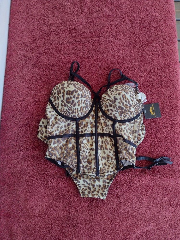 Brand new!!!Just sexy lingerie leopard corset with underwear and stockings size Medium.