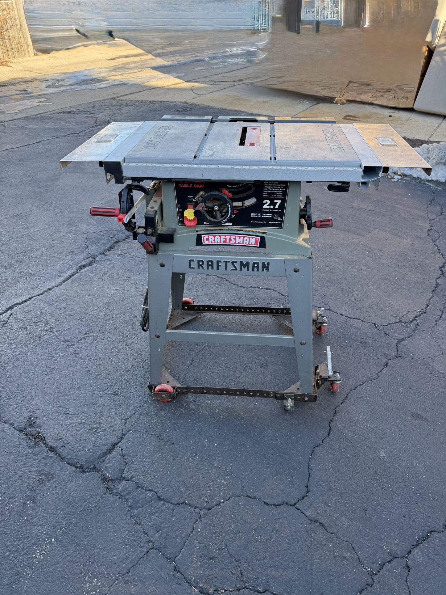CRAFTSMAN 10 INCHES TABLE SAW WITH STAND AND DIFFERENT ATTACHMENTS. $150.00