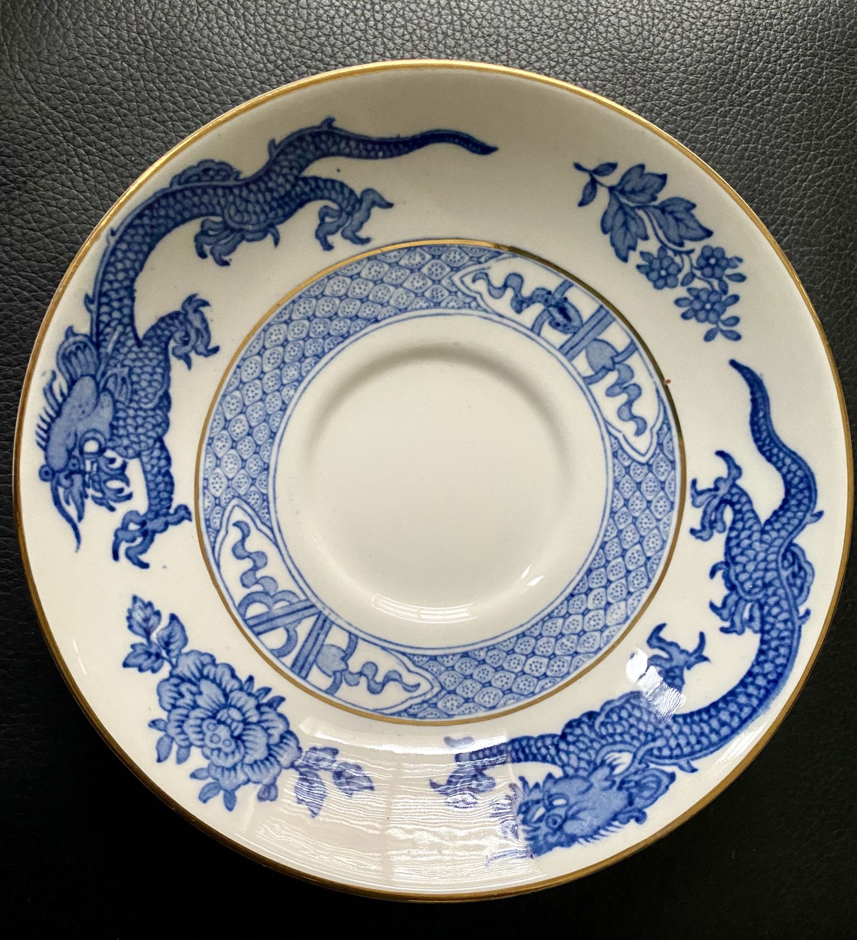 Beautiful Antique China by Booth’s of England 4 Bouillon Cups with lids- Great for a special fancy soup. 4 Saucer Plates- Beautiful Blue Dragon design Blue Dragon Pattern with Gold Trim Excellent Condition - $30 Please let me know if you have any questions.