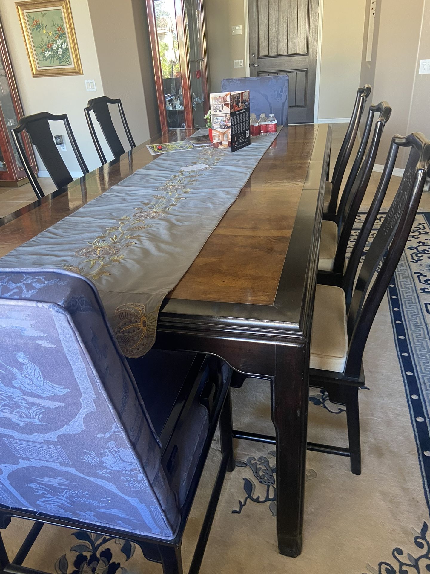 Century Chin Hua Dining Table with Leaves & Table Pads – Solid Wood 8 Includes 8 chairs & linens Beautiful Century Chin Hua dining table in excellent condition. This elegant Asian-inspired design features a rich wood finish and classic lines that work well in both traditional and transitional dining rooms. • Manufacturer: Century Furniture – Chin Hua Collection • Length: 74 inches without leaves • Includes two 18” leaves • Includes custom table pads for protection • Solid, high-quality construction • Well cared for and very sturdy Perfect for everyday dining or hosting larger gatherings with the extension leaves. Cash only. Pick up only.