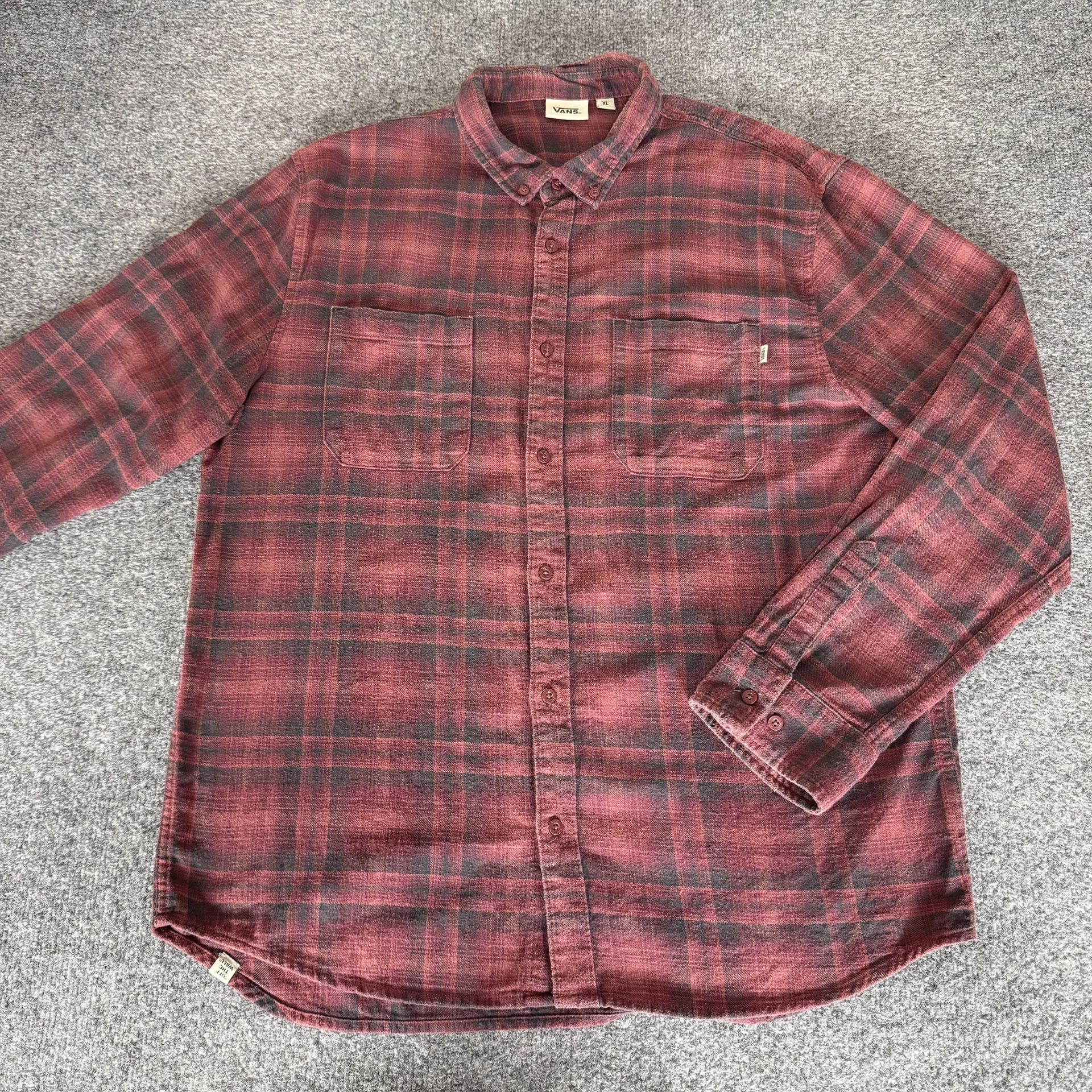 Vans Flannel Shirt Mens XL Red Plaid Long Sleeve Button Up Casual Skate Grunge