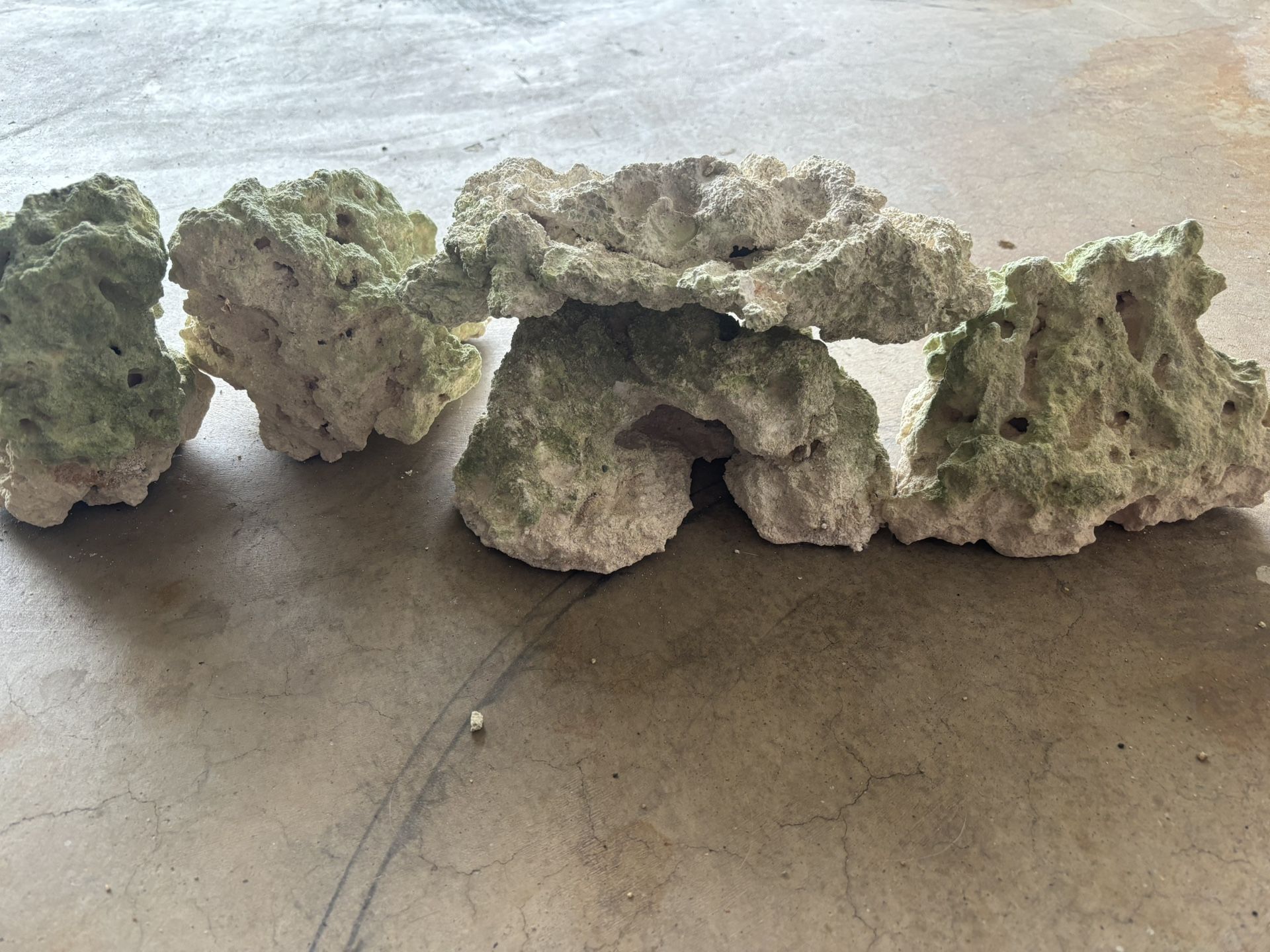 - enough sand to cover the whole tank -5 big rocks saltwater rocks -2 fans for water movement - water change suck up - small battery run filter - scooper for fish - glass cleaner for algae - half filled bacteria for saltwater - coral glue -tank temperature heater - more than half way filled fish food