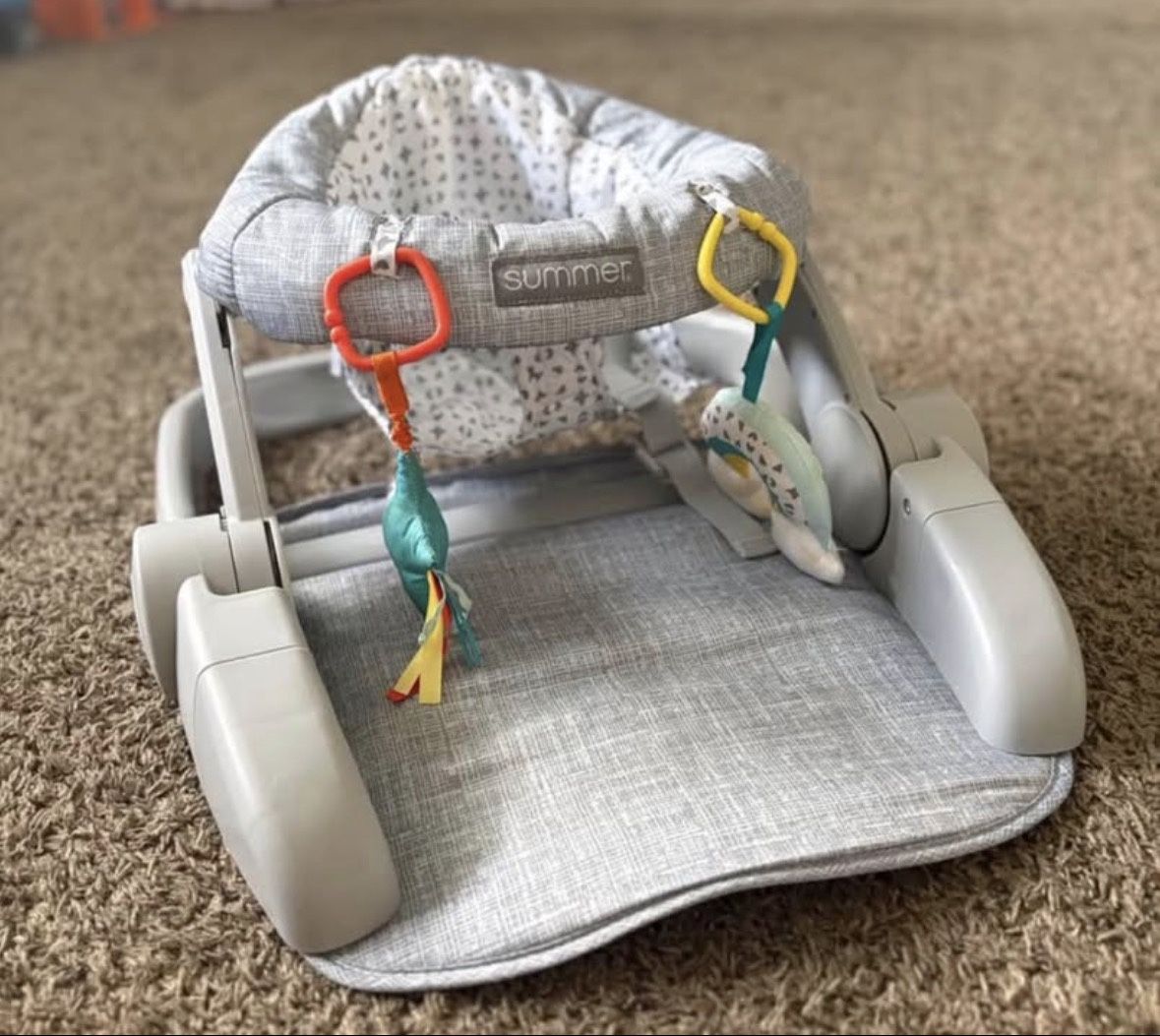 Summer Infant Floor seat. Has two levels and collapses for storage. In good condition, has some stains, pet friendly home, cash only $25, pick up Lenexa Ks.