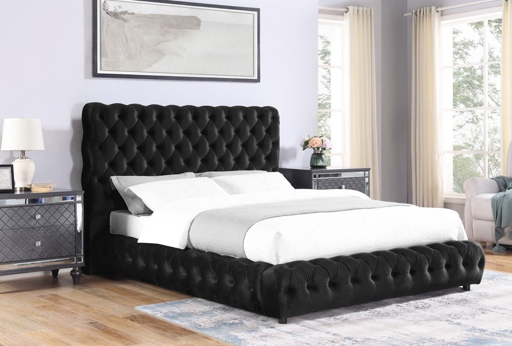 QUEEN $450 KING $500. BLACK VELVET TUFTED PLATFORM BED FRAME